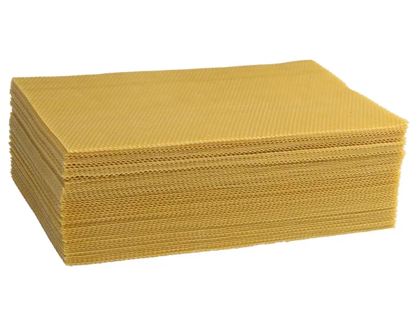 Вощина упакована в гофрокороб 285×420×185 мм. В упаковке содержится 63±5 листов.