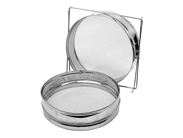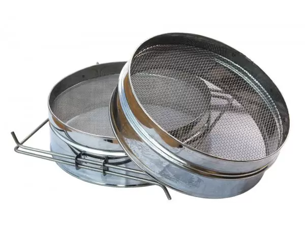 • Двухсекционные фильтры просты и легки при использовании. Такого рода прибор составляют две секции с сетками, плотно вставленные друг в друга. В верхней, горизонтальной сетке, ячейки гораздо крупнее. Нижняя секция отделяет мелкие частички воска через мелкоячеистую полусферу.