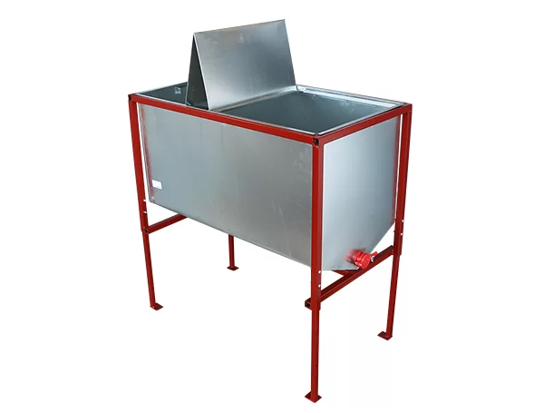Металлические столы для быстрого распечатывания сотов помогают очистить мед от забруса и срезок. Комплектация включает баки из стали пищевого сегмента, сито или противень для фильтрации, разнообразные подставки. Одновременно размещается 1 до 24 рамок.