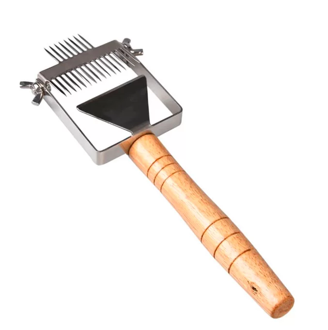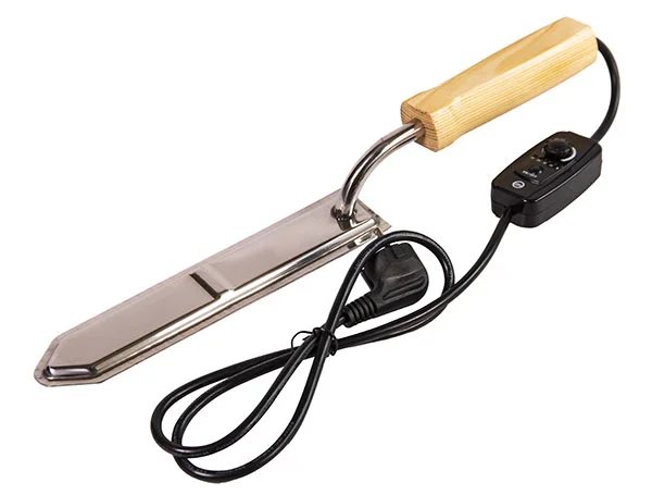 Качественное оборудование и приспособления для распечатки рамок значительно упрощают этот трудоемкий процесс. Например, V-образный электрический или традиционный паровой нож позволяет распечатывать за час 240-280 рамок с медом. Материалом для ножа выбрана нержавеющая сталь, рамки крепятся на статичной станине, потому процесс распечатки ячеек максимально комфортный. В полевых условиях, при невозможности подключения к электросети, подобный паровой нож очень производительный.